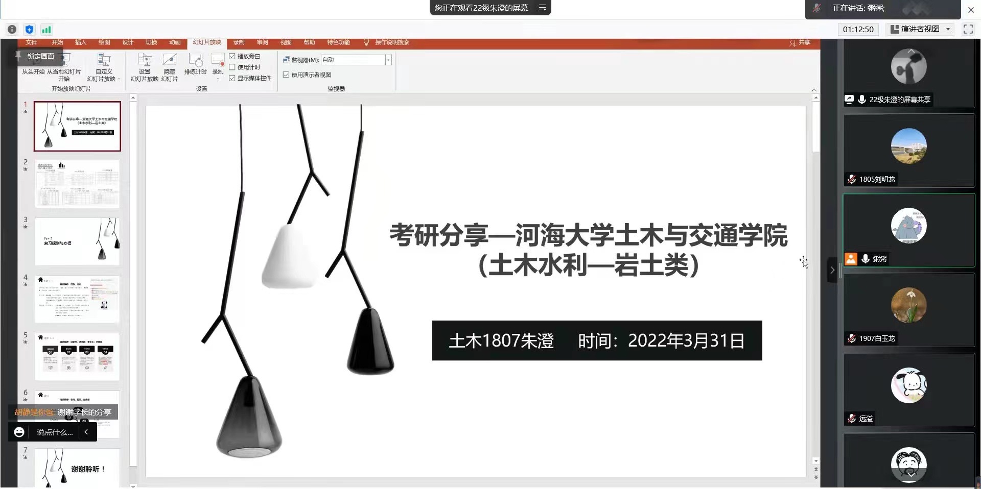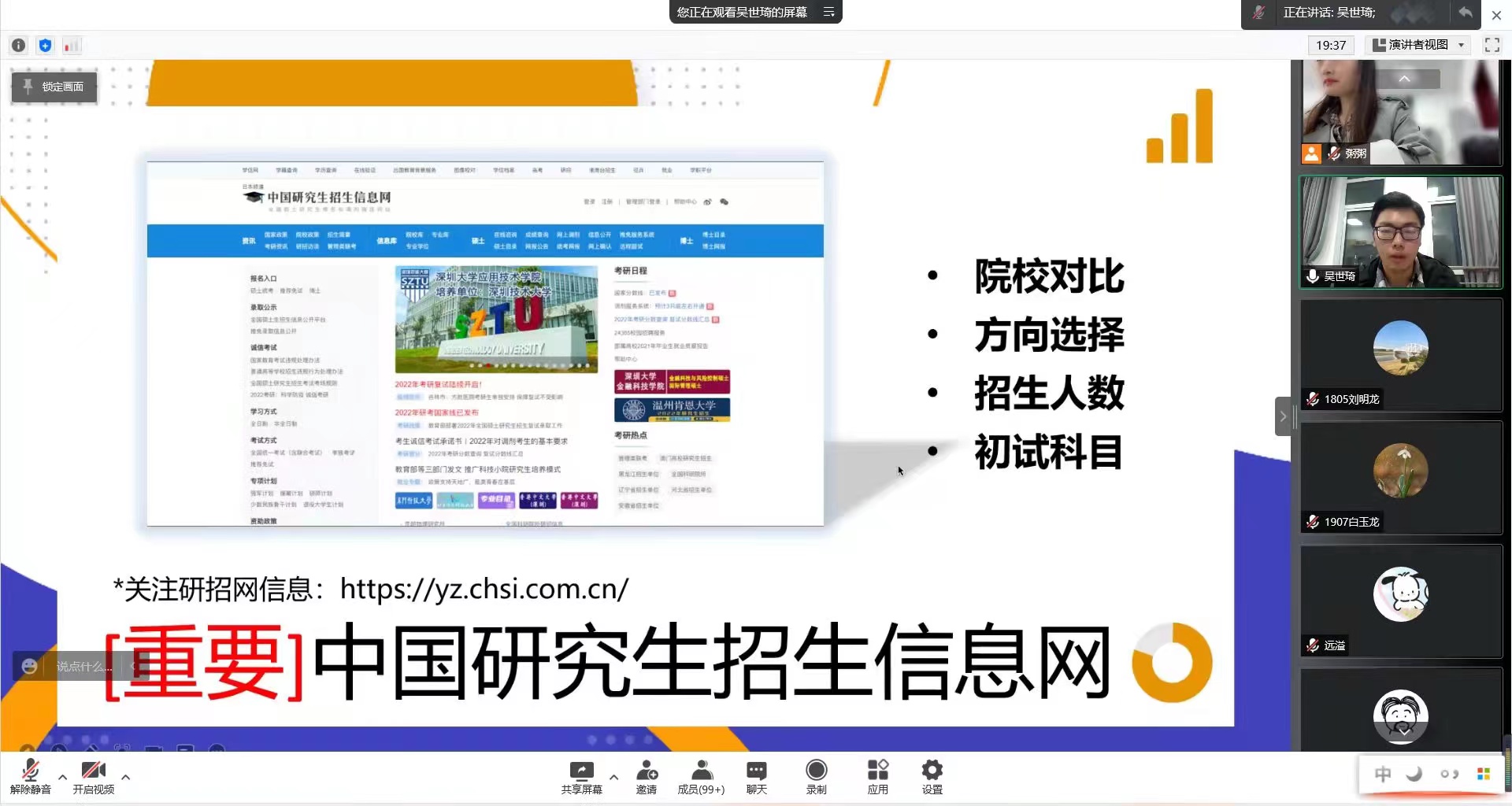 为营造优良学风,帮助员工确立考研目标,树立考研信心,了解研究生招考政策与备考技巧,营造浓厚的学术考研氛围,做好“传帮带”,太阳集团tyc33455官网于3月31日召开了19级线上考研经验交流分享会。会议邀请了18级考取西南交通大学、河海大学、中国矿业大学(北京)、大连理工大学、太阳集团tyc33455官网研究生的五位同学作经验交流。会议由辅导员谢雅文老师主持。