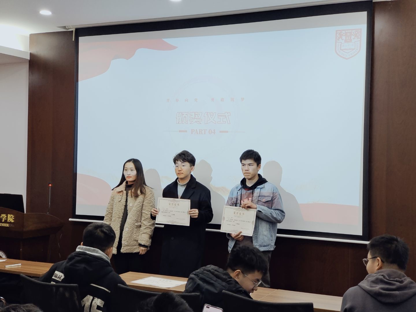 12月8日下午13时,太阳集团tyc33455官网“青春向党,勇敢筑梦”主题演讲比赛的最终决赛在立德楼105正式开始。经过初赛选拔,共有6名同学进入决赛环节。决赛共分为主题演讲和即兴演讲两个环节。