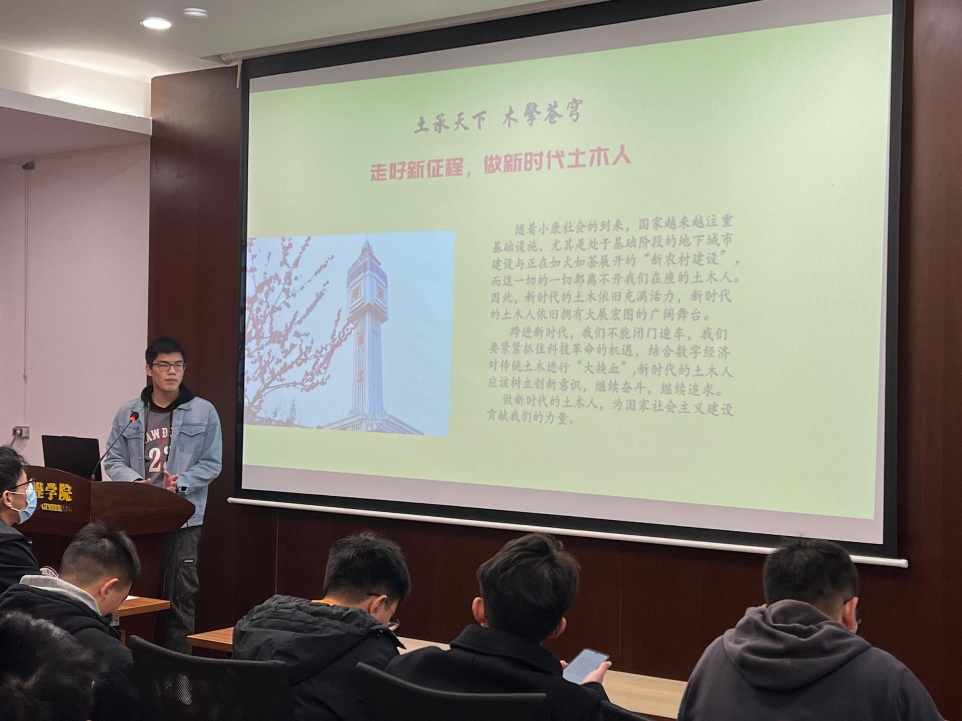 在主题演讲环节,选手们以“忆百年奋斗,谱青春华章”为题,用自己富有感染力的语言,丰富的演讲内容,鲜明的演讲主题传递出:青年们生逢盛世,肩负责任,而“土木人”更要在时代的浪潮中走好新征程,做新时代的“土木人”。