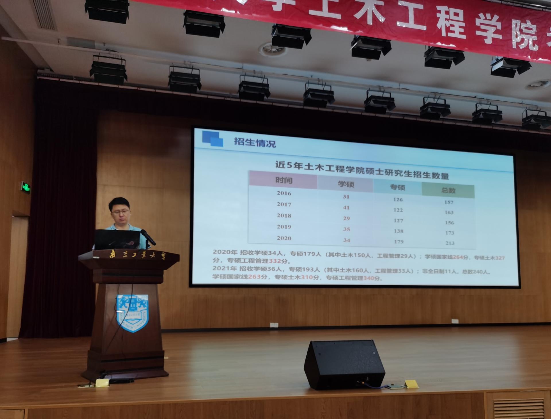 经理王曙光教授在动员讲话中表示,对于面临考研与否抉择的2022届毕业生,一要明确立场、认清形势,不能受盲从心理左右;二要动真碰硬、真学真考,掌握科学方法,提升学习效率;三要谋定后动、心无旁骛,确定目标后不能三心二意,要精准发力。副经理方海教授详细介绍了土木工程专业的学科分类、近年来本校招生简章及考研复习策略,通过全面详实的数据和深入浅出的说明,帮助在座员工进一步理清思路,明确目标。学科办公室主任李军辉老师结合同学的问题,详细说明了本校当前的招生政策和就业前景,同时就专业课的复习思路、调剂的方式方法、如何权衡就业与考研等实用问题进行了现场答疑。今年成功考取天津大学的土木1706班王达同学作为考研先进代表参会发言交流。