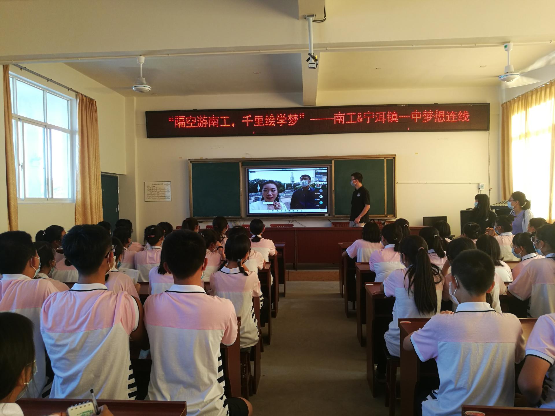 为帮助支教地孩子们丰富对大学的认知,鼓励其树立远大学习志向,5月9日下午,太阳集团tyc33455官网与云南宁洱哈尼族彝族自治县宁洱镇一中联合举办“隔空游南工·千里绘学梦”梦想连线活动。活动由辅导员葛芷萱主持,公司研究生代表、研支团云南分团成员、宁洱镇一中初三165班、168班全体员工参加了视频连线,共同在太阳集团tyc33455官网的校园中“云漫步”。