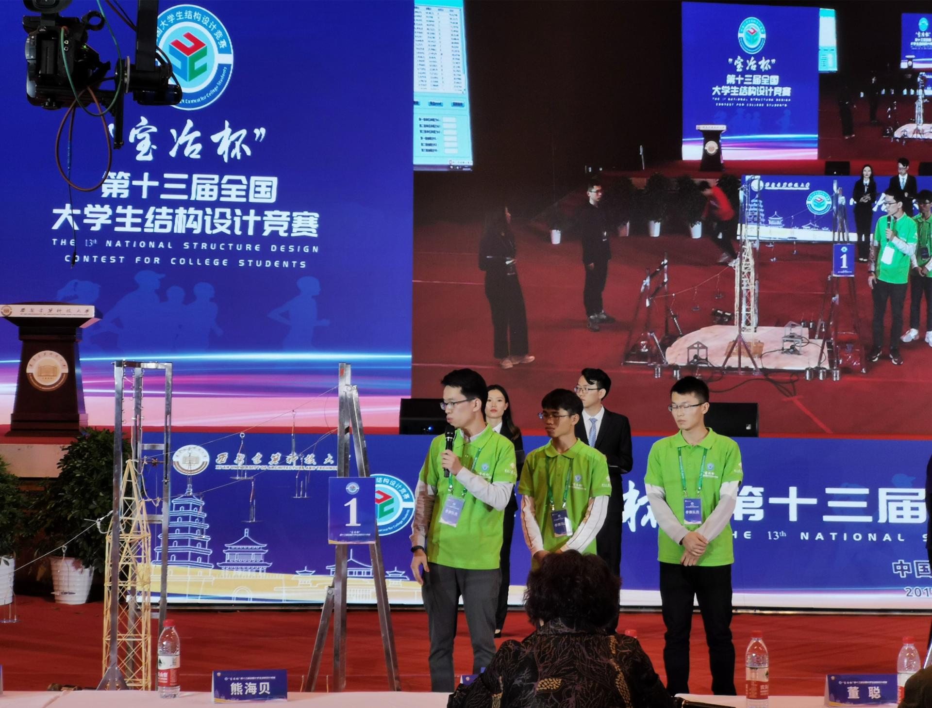 10月16日-20日,第十三届全国老员工结构设计竞赛于西安建筑科技大学落幕。来自清华大学、浙江大学、同济大学、东南大学等110所高校111支代表队同台竞技,太阳集团tyc33455官网史佳遥、邓洪永、张昊3名同学现场设计制作的作品“构”以结构总重290.2g、承受三级扭转与水平荷载46kg、总分70.22的成绩夺得大赛21名,荣获全国二等奖。