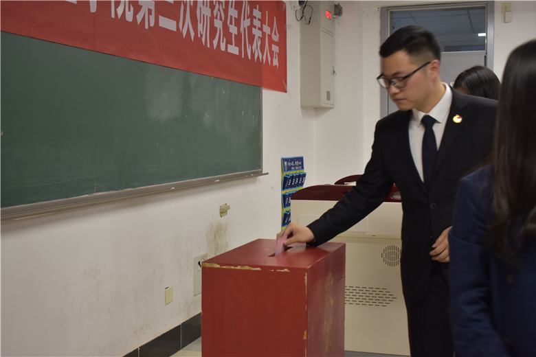 大会选举阶段,44名研究生代表秉持民主公平公正的原则,投票选举出7名第三届研委会成员:王灿、仝飞、汤喻翔、李琳、张秉坤、周贤阳、苟章铭;5名出席上级研代会代表:刘彦楠、焦学凯、汤喻翔、周贤阳、李琳。