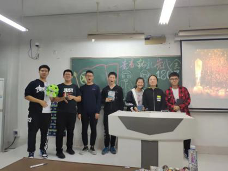 对于新生到校后的第一次团日活动,全体支部同学热情高涨,早早的就来到了教室。宣传委员以及生活委员组织提前布置活动教室黑板,为活动营造出青春活力的氛围。主持人准备了暖场视频和互动游戏,让同学们更快进入角色,气氛更加热烈。活动中,团支书向我们介绍了团的十八大的基本知识,以及共青团的历史,让同学们透彻的了解了团的历史以及党对我们共青团员的期许,心中增加了一份浓浓的责任感以及爱国情怀。主持人为了让同学们加深印象,还准备了抢答以及问答的环节。在这个环节中,各个小组的成员互相配合,积极抢答,以竞赛的形式加深了大家对团组织的认识和归属感。