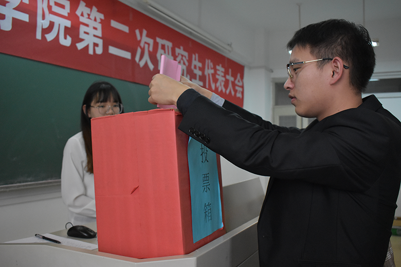 伴随着庄严的国歌,公司分团委副书记杨松上台致开幕词,会议正式开始。随后,院研会主席李成帅介绍了大会的筹备工作情况、主要任务及与会代表的遴选方案。接着,校研会主席解登峰代表校研究生会表达了对公司研究生会工作的肯定。研委会工作报告中,李成帅以“团结一心,引领研究生生活新方向”为题,回顾了过去一年研会的主要工作并规划出未来一年的工作蓝图。大会选举阶段,30名代表秉持民主公平公正的原则,投票选举出了第二届研究生委员会成员。