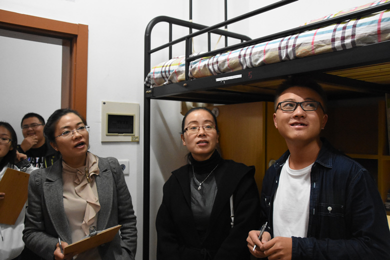 本次宿舍文化节以公司17级全体员工宿舍为主,家长们分为三组在公司师生陪同下依次参观宿舍,对宿舍卫生,宿舍安全、宿舍装饰等方面进行评比打分,家长们对宿舍的居住环境及同学们的创意布置赞不绝口。在评比过程中,公司领导老师及家长们亲切地与同学们进行交流,关心同学们的生活及学习情况,提醒同学们强化安全意识。