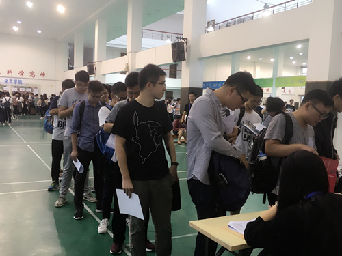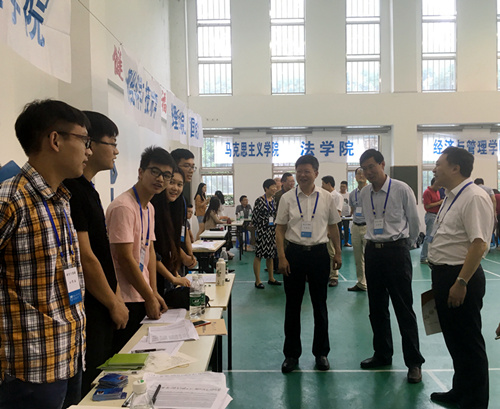 迎新工作期间,南京工业大公司党委书记芮鸿岩、董事长乔旭、党委副书记、副董事长高明、副董事长刘伟庆、副董事长崔益虎等校领导,亲临新生接待工作现场,指导现场迎新工作,仔细询问今年研究生新生的报到情况,并和办理手续的研究生亲切交流。