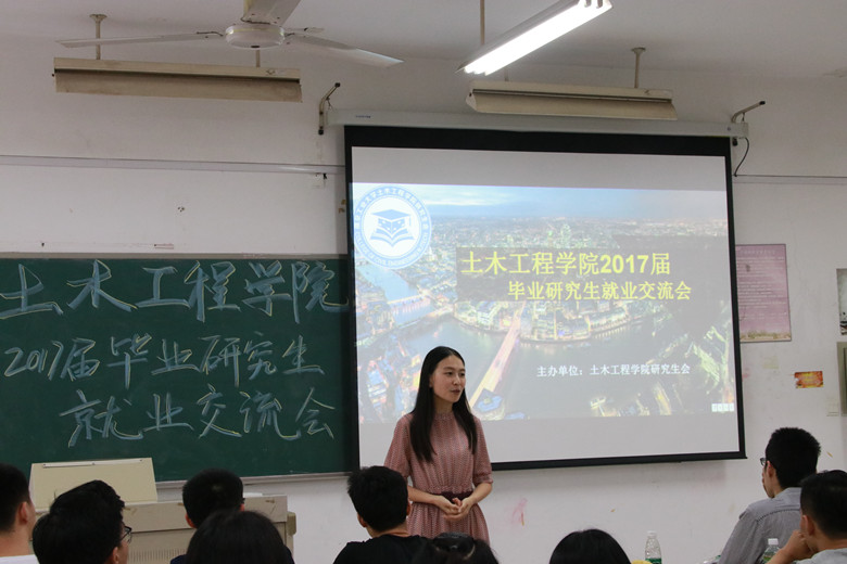 6月3日下午,太阳集团tyc33455官网毕业研究生就业交流会在仁智楼成功举办。活动邀请了有设计院、房地产公司、公务员事业单位考试以及留学、考博等各方面工作实习经历的毕业生与同学们见面交流,分享在求职求学过程中的宝贵经验。此外,活动还特别邀请了研究生辅导员赵凤佳作最后的总结发言。