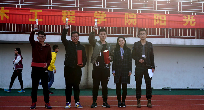 此次“阳光体育运动会”在班级风采展示中拉开帷幕。土木公司16级11个班级的班长举起班旗绕操场一周,展示出新一代学子的精神活力与班集体积极昂扬的精神风貌。本次运动会项目丰富,共设有男子100米,女子100米,男子1500米,3000米等径赛9项、田赛5项的比赛项目,运动员们各自发挥所长,展现风采。 下午的比赛项目为集体趣味运动会,包括投篮、垒球投掷、“手足情”、“摸石头过河”、跳绳与拔河。各班成员积极投入其中,展现出土木人拼搏向上、永不退缩的精神和强大的凝聚力。