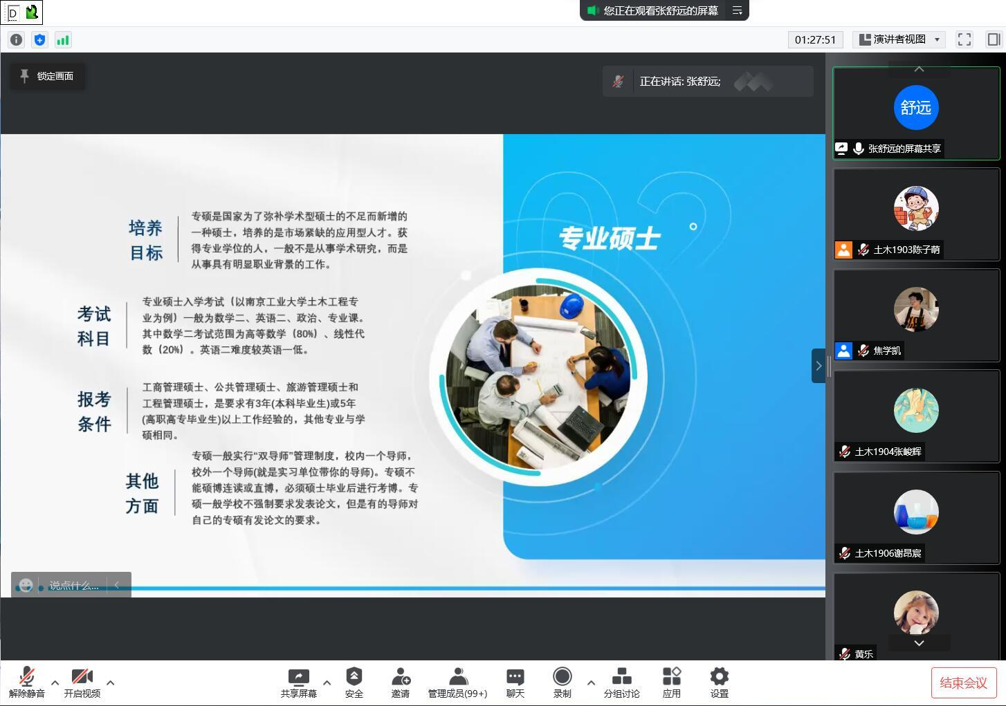 活动还设置了线上提问答疑环节,参与分享的学长们耐心地为同学们答疑解惑。结束后,同学们纷纷表示此次分享会及时地解答了自己在复习时的困惑并对备考过程中的状态、心态调整有较大帮助。