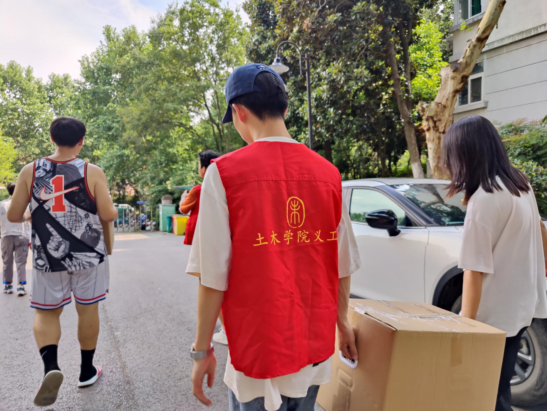 穿红马甲的志愿者们不畏辛苦,热情高涨,来回穿梭于象山、檀香宿舍的楼道里,积极为毕业生打包搬运物品,协助毕业生安全、快捷、有序地离校,在为毕业生提供周到服务的同时,也减轻了宿舍楼管员的工作量。