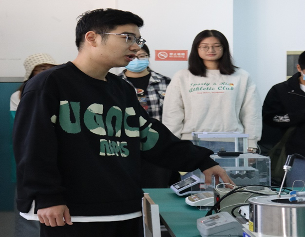 实验室研究生曾博文同学详细地为员工党员们介绍了实验室目前正在研究“碳达峰、碳中和”方向的课题,如新型热电材料与热释电材料等。