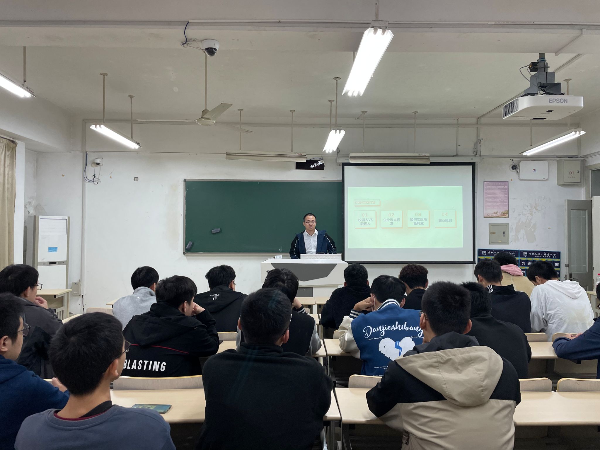王经理从四个方面对2021级员工开展生涯教育:首先,从环境、学习、人际关系和承担责任四个维度系统介绍“校园人”和“职场人”区别;其次,重点从品德、能力和价值观三个方面分析企业精准选人标准;再次,从心态转变和行为转变两种转变方式上教会同学们如何实现角色转变;最后,从明确个人志向-自我评估和职业机会评估-职业选择-设定职业生涯目标-确定职业生涯路线-制定个人行动计划方面指导同学们进行科学职业规划。