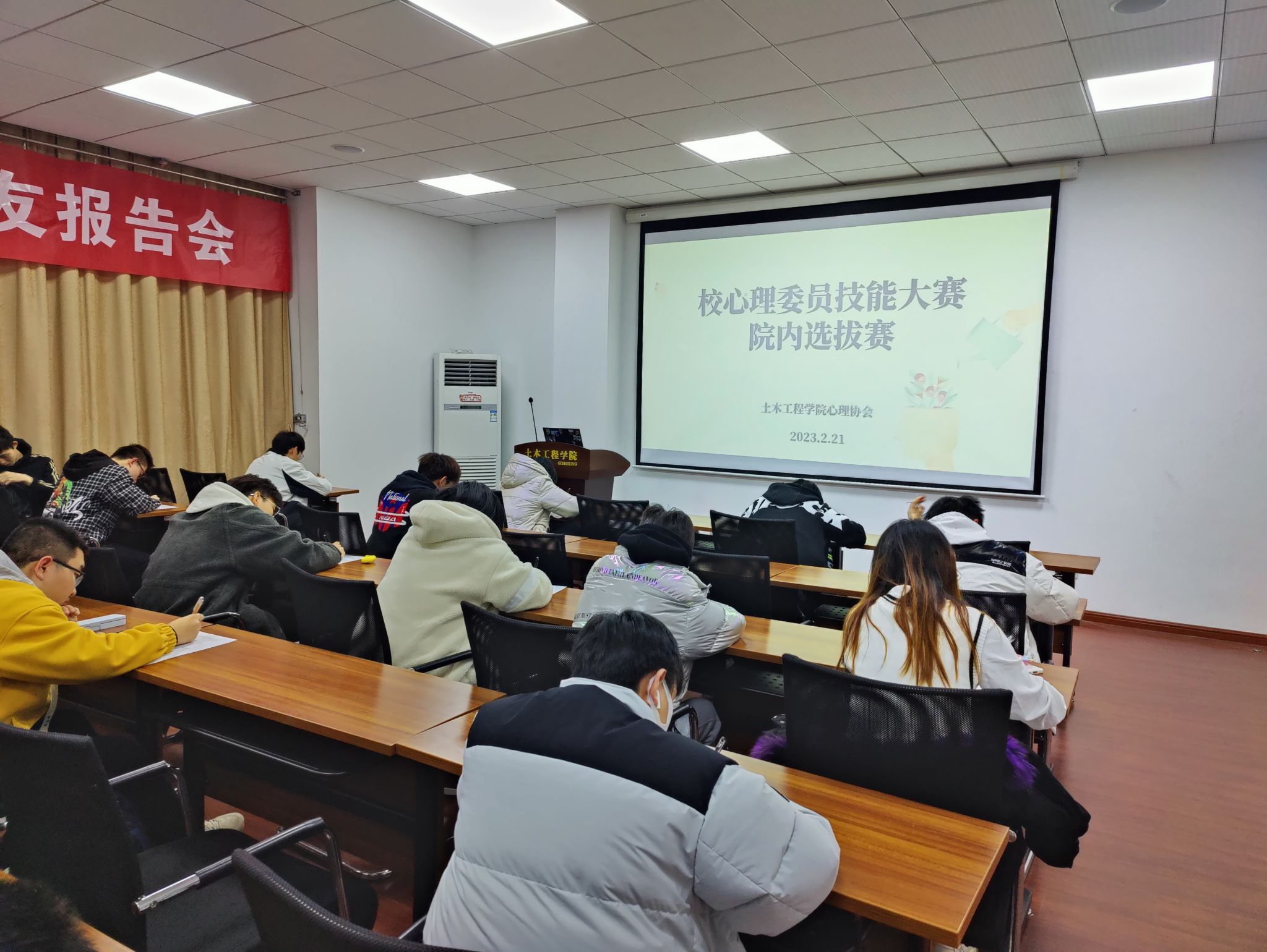 2月21日,太阳集团tyc33455官网心理协会于立德楼104成功举办校心理委员技能大赛院内选拔赛。游艺林老师、心理协会全体成员、全院心理委员参加活动。