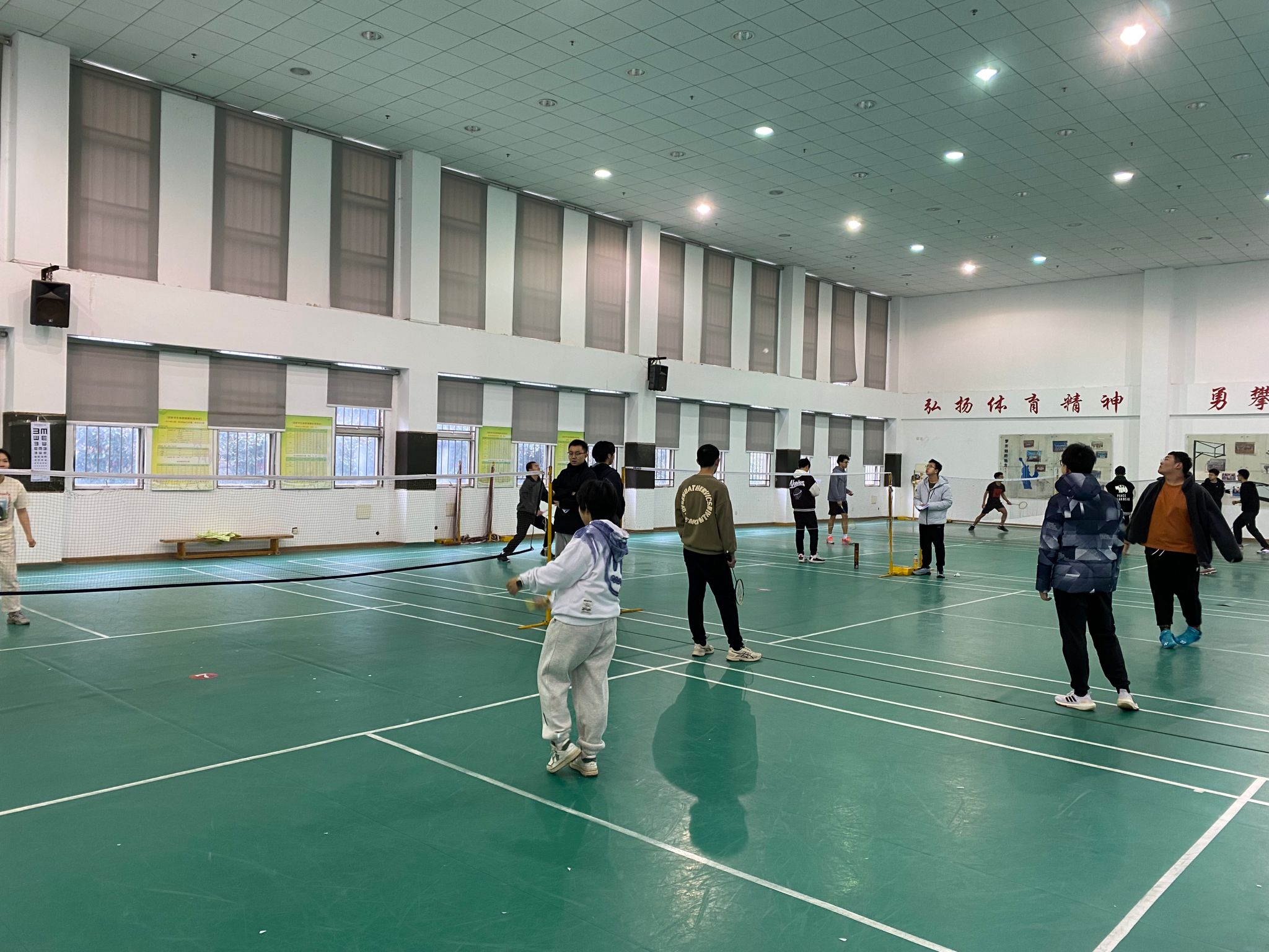 春寒乍暖展气势,羽球健儿争荣光。沉心、弯腰、架拍、撤步、劈吊、滑板。专注与爆发合一,进攻与防守转换。拼搏正显青春风采,赛场等待你来挑战!