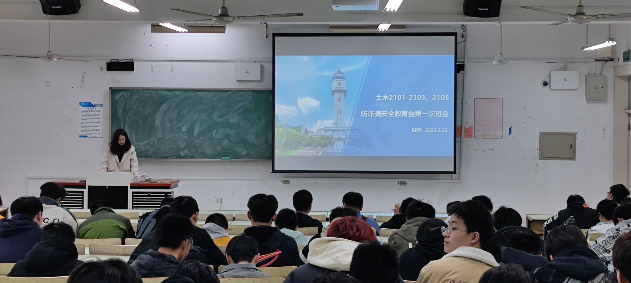 班会伊始,通过表彰在“评优评先”中获得荣誉的集体和个人,鼓励先进、树立榜样,营造比、学、赶、超的浓厚学习氛围。随后,土木2101学习委员刘英杰同学带领大家学习考生考场守则,结合考试违规通报情况具体阐释考试违纪和考试作弊各项条例,提醒大家务必严守考场纪律,诚信考试、踏实做事。班会最后,姜老师带领大家观看反诈宣传片,结合真实案例介绍刷单兼职、投资理财、冒充公检法、恋爱交友等常见电信诈骗手法,并告诫大家增强自我保护意识、谨防自身信息泄露、抵制电信诈骗行为,紧紧守住安全底线。