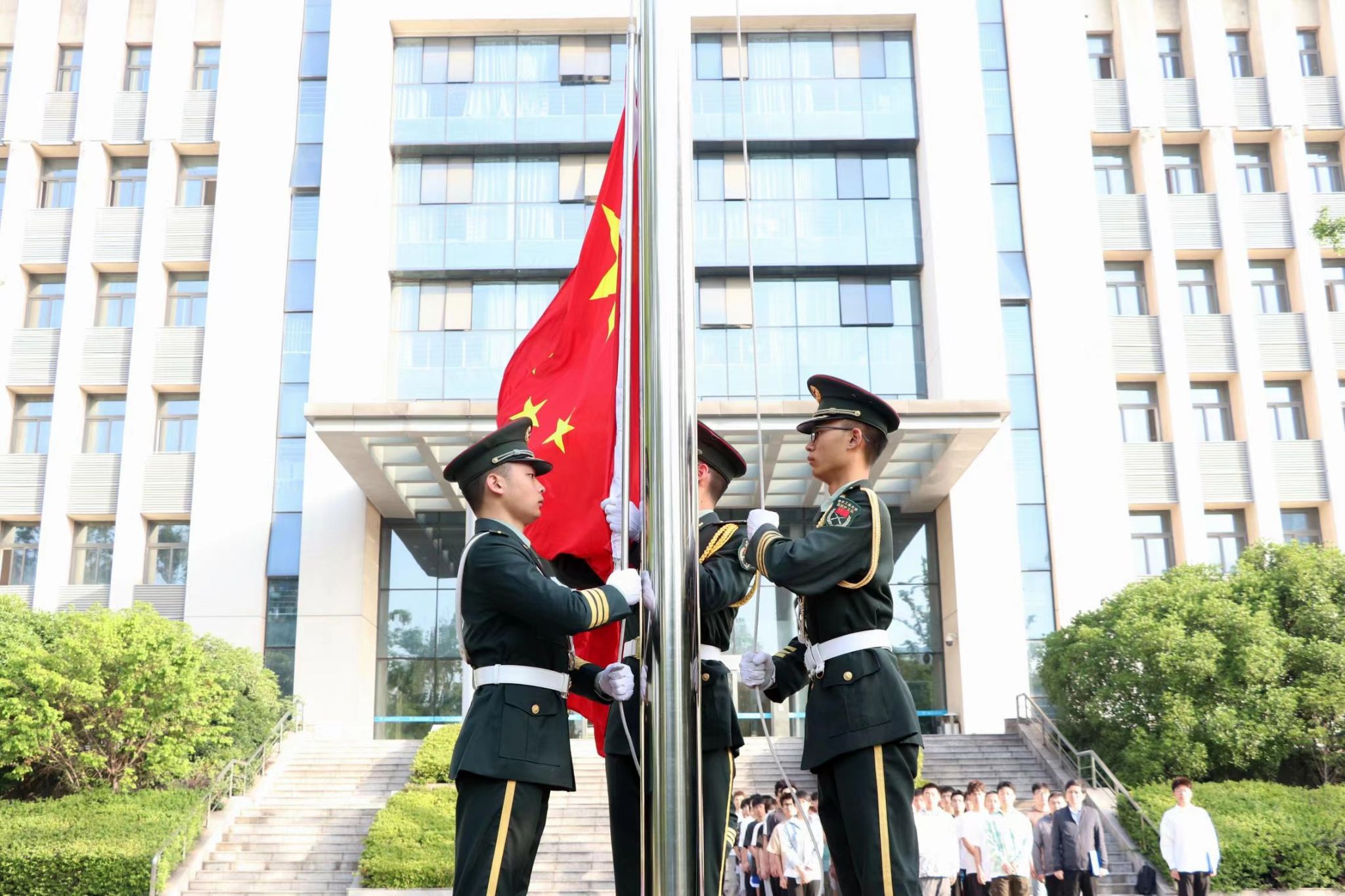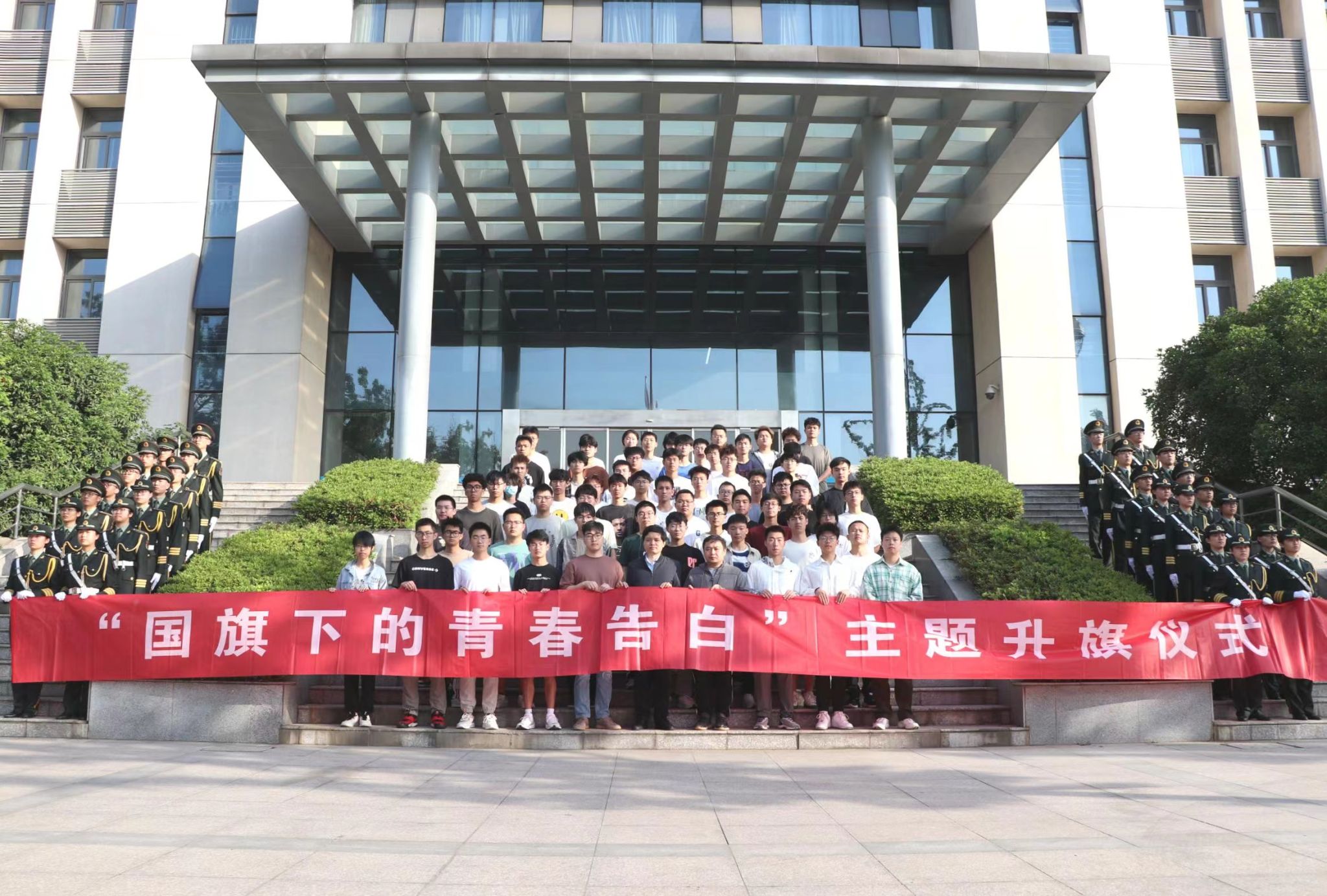 近日,太阳集团tyc33455官网在明正楼前广场举行“国旗下的青春告白”主题升旗仪式。公司党委副书记路遥,辅导员李晓、焦学凯以及本科生代表参加此次活动。活动由土木类2205班时泽林主持。