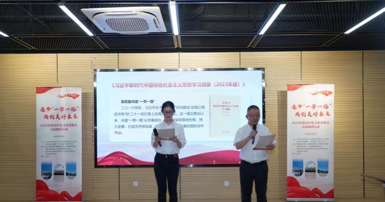 活动中,全体党员先后参观南京中欧班列起点站尧化门铁路货场、南京奥林匹克博物馆、南京国际友谊公园和友城展览馆等代表性场所,深切感受到了“一带一路”倡议提出十周年来南京的生动实践,以及南京高质量推动“一带一路”交汇点重要枢纽城市建设的作为。寻访结束后开展了“学思践悟习近平新时代中国特色社会主义思想”读书会,南京市委党校政治学与法学教研部苏瑞娜副教授带来一场围绕“一带一路”倡议的讲座。活动最后,党员代表诵读《习近平新时代中国特色社会主义思想学习纲要(2023年版)》段落,感悟"一带一路"的时代内涵,"一带一路"是大家携手前进的阳光大道,不是某一方的私家小路,追求的是发展,崇尚的是共赢,传递的是希望。