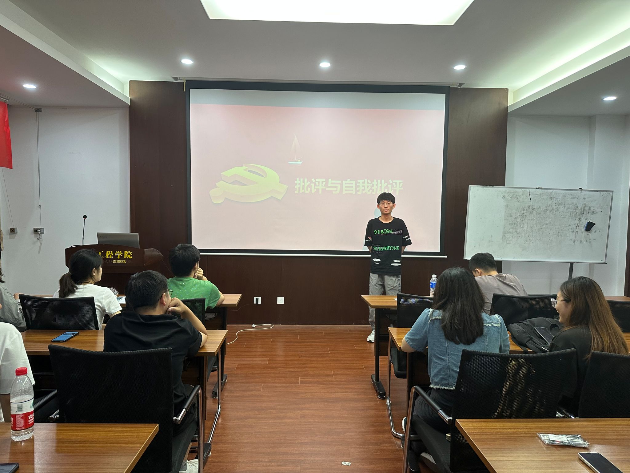 支部首先开展理论学习。王雪萍、章伯阳、郑明星三位同志分别进行学习汇报,从提升思想境界、加强党性锻炼等方面,结合自己的学习情况,进行了思想学习报告与分享。随后,党支部书记谢璐璐代表党支部委员会向全体党员报告半年来党支部工作情况及检视问题情况。该报告从党员政治理论学习、党员发展和支部建设三点展开,总结了党支部半年来学习习近平新时代中国特色社会主义思想、吸纳支部成员以及组织支部活动等情况,报告还检视了党支部在开拓创新、支部考核和联系群众等工作中存在的问题。最后,与会党员开展批评和自我批评,针对自己在思想以及工作学习方面存在的问题进行深刻的剖析与反思,并提出改进方案。面对其他党员提出的批评与建议时,也坦诚接受批评,认真反思,展现出自我改进与完善的决心。