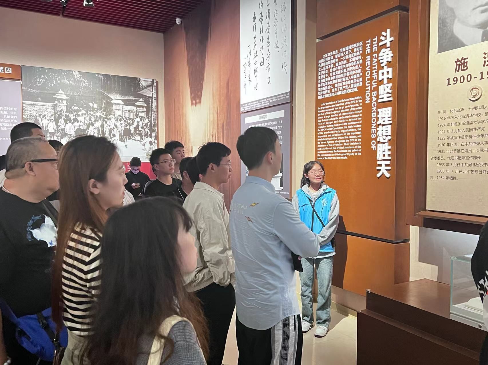 在讲解员的带领下,全体党员参观了展馆的基本陈列《信仰的力量——雨花英烈生平事迹展》。展览共分为光荣北伐革命先锋、力挽狂澜前仆后继、奋起抗战中流砥柱、迎接黎明血沃新天四个部分,以烈士遗物、照片、史料为主体,辅以场景、视频、多媒体等多种展陈手段,集中展示了179位雨花台烈士的生平事迹。同志们认真聆听讲解,并时不时驻足细看展陈,切实感悟“雨花精神”,深刻理解共产党人的崇高理想信念和高尚道德情操。