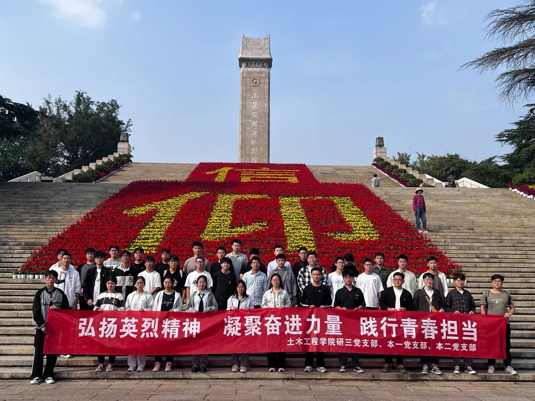 为加强思想政治教育,学习革命先辈事迹,坚定我辈初心信念,10月14日,太阳集团tyc33455官网研究生第三党支部联合本科生第一党支部及本科生第二党支部前往南京红色基地雨花台烈士纪念馆,开展了以“弘扬英烈精神,凝聚奋进力量,践行青春担当”为主题的党日活动,在实践学习中弘扬烈士精神,庚续红色血脉。