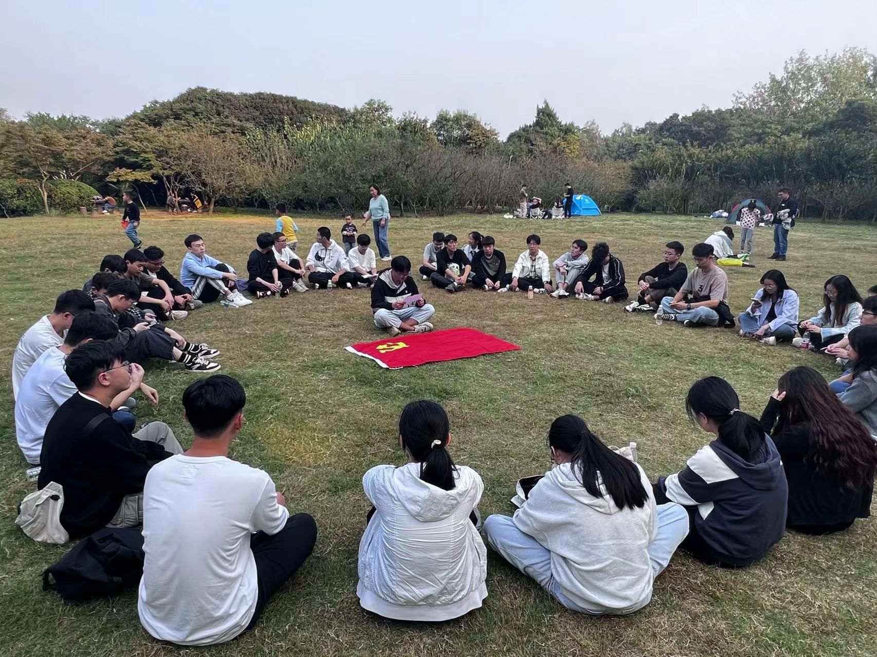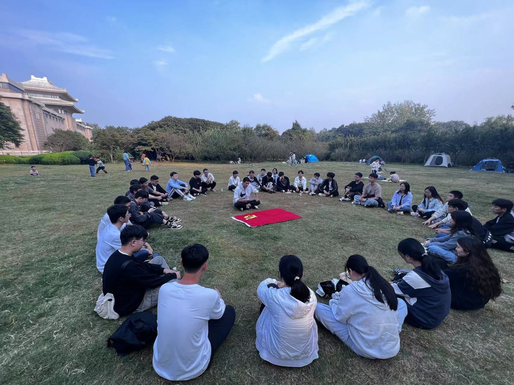 随后,大家来到纪念馆旁的草坪上围坐,并踊跃发言,分享自己参观纪念碑的感受或讲述党史故事。各支部党员代表从不同角度描述了刘胡兰、恽代英、邓中夏等革命英烈不怕牺牲、浴血奋战的光辉历史。在一个个感人的故事中,大家回望激情燃烧的岁月,用赤诚之心去追寻缅怀革命先驱不朽的足迹。