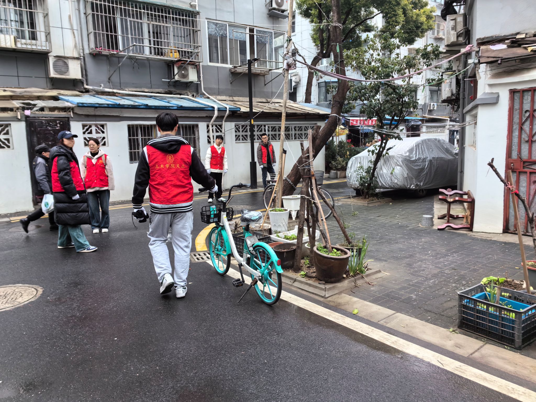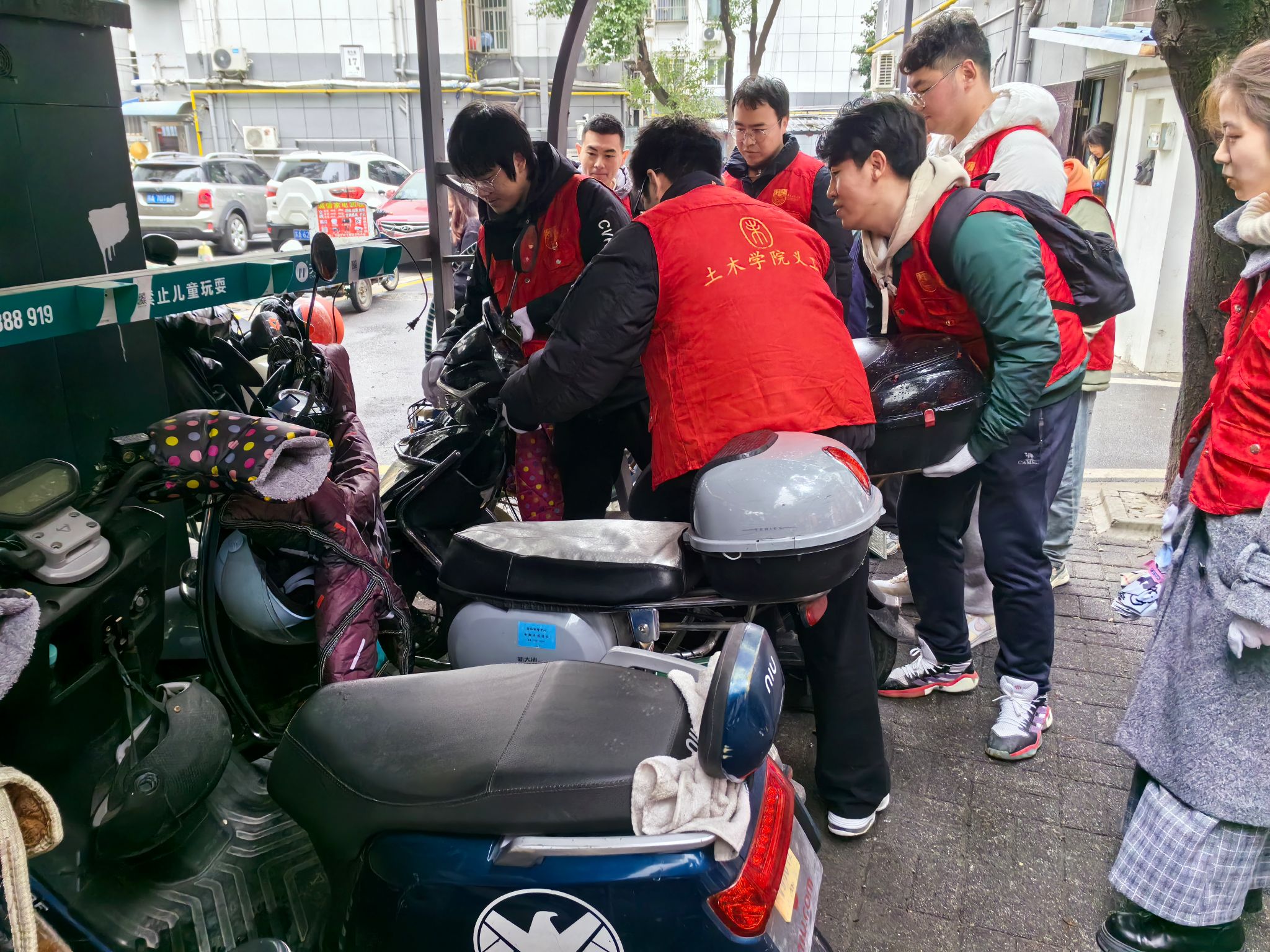 3月5日上午9:30,二十余名本科、研究生党员志愿志愿者穿着统一的志愿者服装,到达鞍辔坊小区。社区负责人分配好工作任务,一部分志愿者负责将被风吹倒的车辆扶正并摆放整齐,将随意摆放的共享单车搬移至停放点,维护共享单车的停放秩序;一部分志愿者负责手拿夹子、垃圾袋等工具,集中清理小区楼道、绿化带里的白色垃圾、果皮纸屑及周边暴露垃圾、枯枝败叶等,并把垃圾进行分类,有效提升社区环境的整洁度,协助打造美丽文明社区。