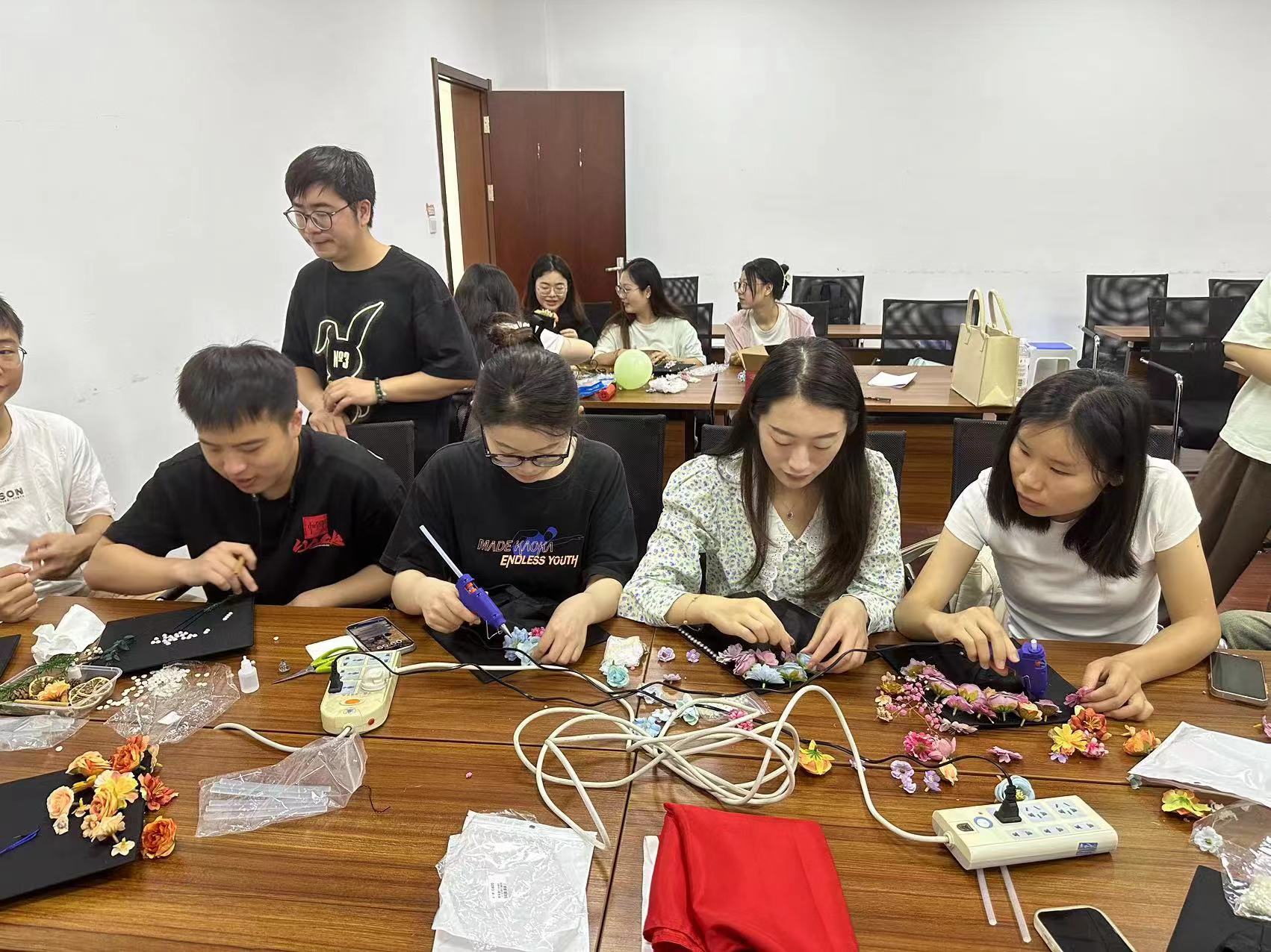 随后,活动进入了一项别具一格的环节——毕业帽手工簪花制作。在支部副书记陈林川指导下,毕业生党员们亲手制作了具有中国传统文化特色的簪花毕业帽。这些簪花不仅寓意着光明的未来,也象征着坚持与执着。手工制作的过程不仅让每位参与者体验到传统手工制作的魅力,还增强了团队之间的凝聚力和协作精神。