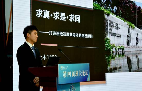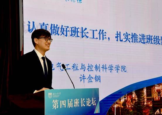 吴胜红副书记为中建八局人力资源部总经理、干部人事部部长惠乐怡颁发校外辅导员聘书。随后,惠乐怡从大学之道、优秀班长所具备的四种能力、角色定位等方面作了题为《青春正当时》的主题辅导报告。首届班长论坛一等奖、电控1401班班长许金钢、校第十四届“周恩来班”计1703班班长宋欣哲、省先进班级土木1802班班长吴逸分别作了主题交流发言。在班级建设展示暨决赛环节中,土木1801班班长费舒桓等10位同学进行了精彩展示,最终产生一二三等奖。
