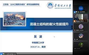 7月16日,2020年江苏省“土木工程防灾减灾”研究生暑期公司进入第四天,5位国内外知名专家通过线上线下混合授课方式给学员们带来了一天精彩的学术盛宴,主要授课内容包括工程结构损伤分析、抗冲击、抗火及智能土木工程等四个方面内容。