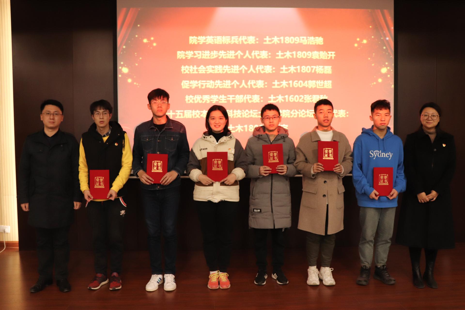 2019级同学带来班服展示作为暖场,展现了土木学子青春阳光、积极向上的精神面貌。大会伊始,王曙光经理致辞,他对公司同学们取得的成绩给予充分肯定,并且勉励同学们继续坚持勤奋学习,利用“榜样力量”,投身社会,奉献社会。随后,方海副经理宣读表彰决定,并由在场老师为获奖的先进集体和先进个人颁奖。