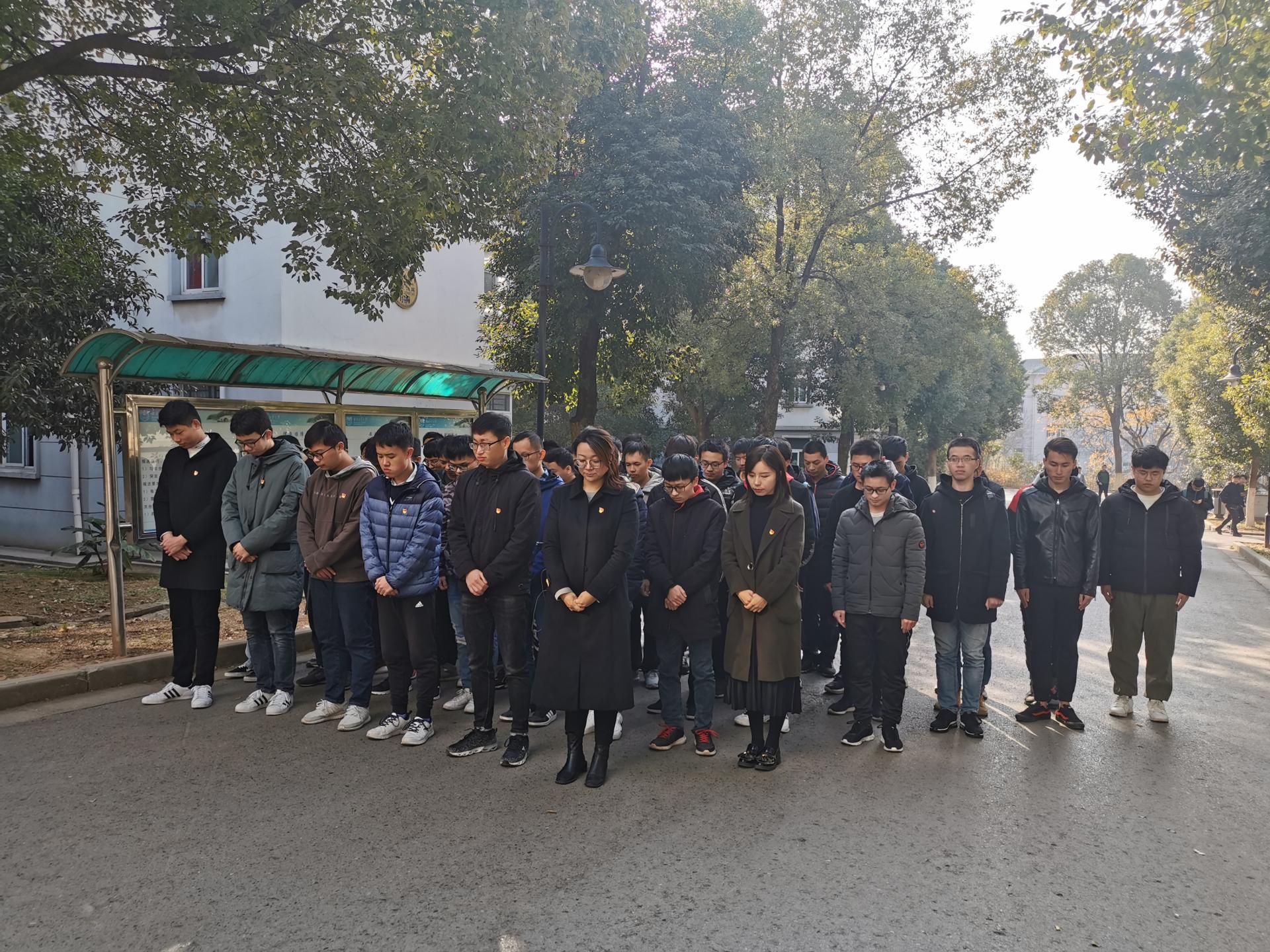 上午10时,在同和楼、仁智楼教室、员工宿舍、浦江操场、天宝阁,全体同学肃立,为遇难同胞默哀致敬,表达对南京大屠杀死难同胞的悼念之情,整个现场庄严肃穆。