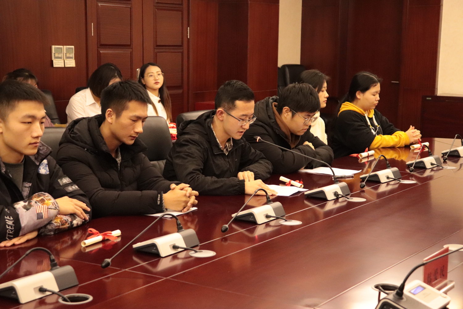 许翠梅副部长宣读表彰决定后,与会领导和嘉宾共同为20名受助员工颁发了证书。受助员工代表土木1810高磊,土木1605孙天培、机械1603王光辉同学分别代表本年度和往年受助员工发言,他们对员工的关爱和公司的培养表示感谢,并将以此为动力,心怀感恩,立志成才,回报社会。