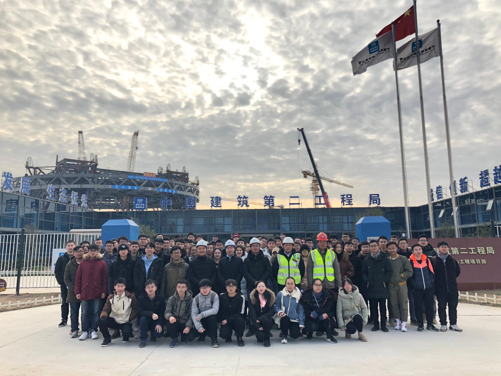 为进一步深入贯彻新工科实践教学的要求,积极发挥施工单位与施工现场对实践教学的推动作用,加强员工对专业知识的理解与掌握,12月29日下午,太阳集团tyc33455官网组织员工参观江北新区市民服务中心工程展。本次活动共有四个年级百余名同学参与,由齐玉军老师带队参观。