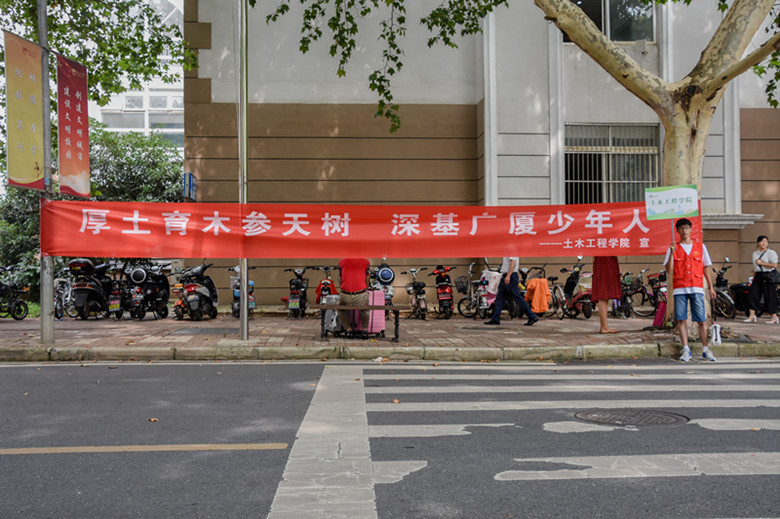 9月7日上午,笃行楼大厅15位助理班主任和新生辅导员站好迎新第一岗,办理新生报到手续,确保新生报到秩序井然。公司在校门口、厚学楼、笃行楼、镜湖及檀香、象山宿舍安排了志愿者为新生及家长提供温馨周到的服务。志愿者耐心解答问题,引导手续办理,班车乘坐和宿舍入住。在笃行楼门口摆放的具有土木工程结构特色的模型吸引了不少新生和家长拍照留念。公司吉祥物“马里奥”也参与到迎新中,为新生们指引方向。
