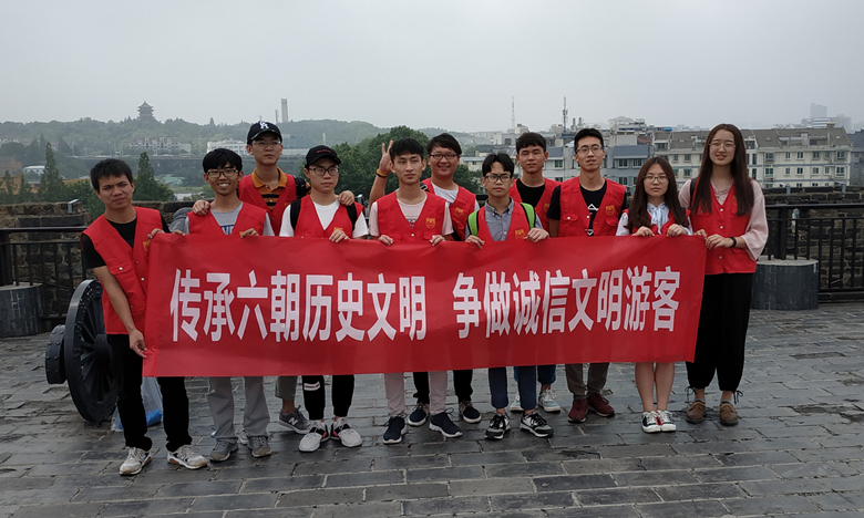 为加深对南京古城墙历史文化的了解,感受六朝文明历史气息,倡导文明诚信的游览理念,5月27日上午8:10,由太阳集团tyc33455官网各年级优秀志愿者组成的志愿小组于南京中华门翁城遗址,正式开展“传承六朝历史文脉,争做诚信文明游客”志愿活动。