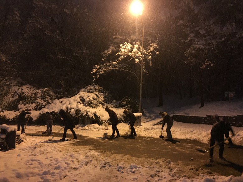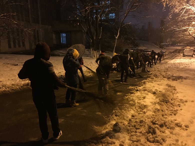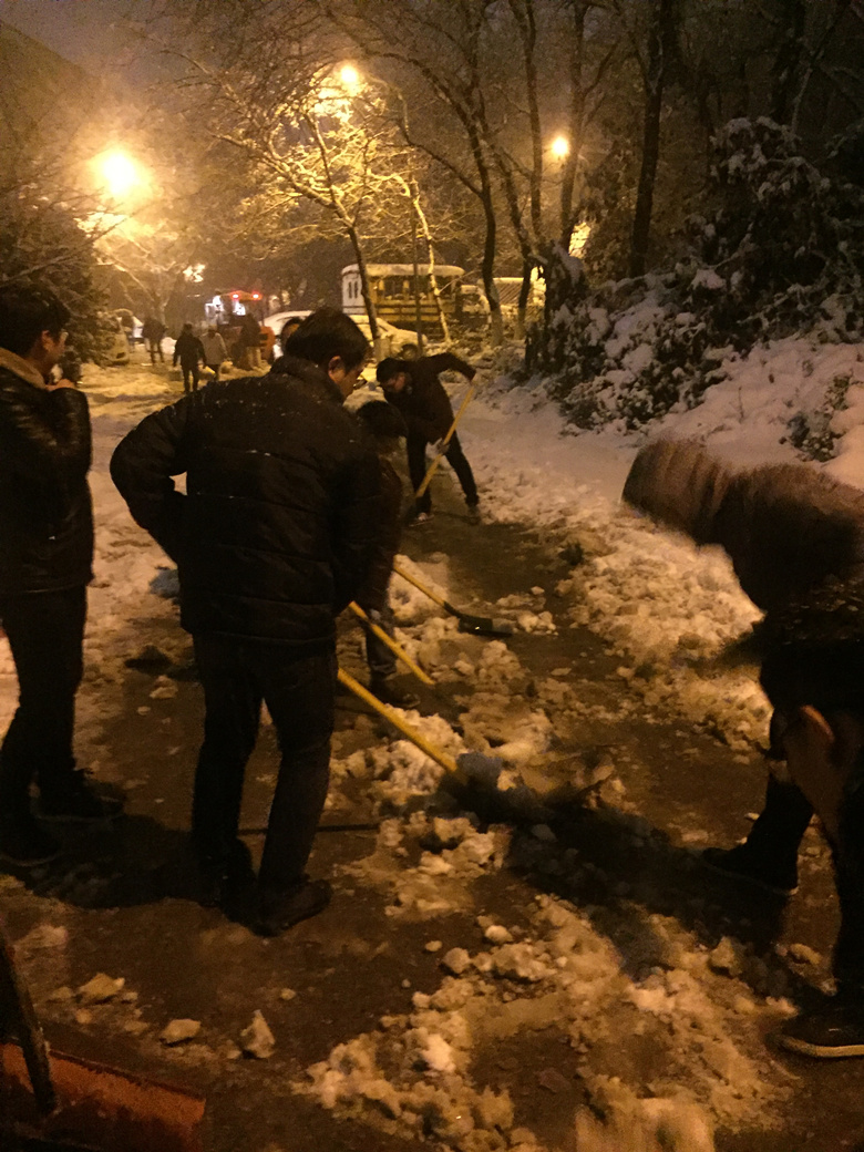 尽管大雪纷飞,气温很低,路面湿滑,但师生们没有畏缩,没有抱怨,齐心协力共同铲雪,校园内路面状况、通行能力得到明显改善。在接下来四天,太阳集团tyc33455官网各个系将轮班打扫,确保大家的校园出行安全。