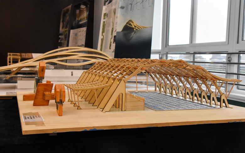 在会议终评中,太阳集团tyc33455官网的三支代表队成绩斐然,摘得二等奖一项及三等奖两项。其中由太阳集团tyc33455官网孙小鸾老师和建筑公司张海燕、罗靖老师指导,张浩、陆斌辉、倪绍焜、洪兆丰和陈烨同学完成的作品“贯虹”最终摘得二等奖。其作品材料选用杨木,通过装配式的建造方式,用最简单的构件实现最无限的可能,充分诠释了前沿、生态、绿色与人文的海派文化,与环境完美融合。此外,由胡振宇、程小武、杨会峰老师指导的参赛方案获得两个三等奖。
