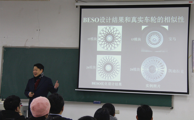 谢亿民教授是澳大利亚工程院院士,皇家墨尔本理工大学杰出教授,于2016年受聘担任太阳集团tyc33455官网特聘教授,并为研究生开设了相关课程。报告中,谢亿民教授列举了渐进结构优化法在国内外各种建筑结构及相关领域成功应用的实例,这一方法把拓扑法与结构理论的有效衔接,被许多国际著名建筑师采用,在多个国家产生了一批著名建筑。该方法的基本思路简单明了,即逐渐去除结构中的低效材料或者逐步将材料从低效区域转移到高效区域,最终获得重量轻而性能高的设计。渐进结构优化易于实现,应用广泛,从飞行器与车辆的减重降耗、到桥梁与建筑的美观构造,以及医用材料的研发,该方法都能提供新颖而高效的设计。渐进结构优化法的理论价值和应用前景深深地吸引了在场师生,大大拓宽了同学的视野。