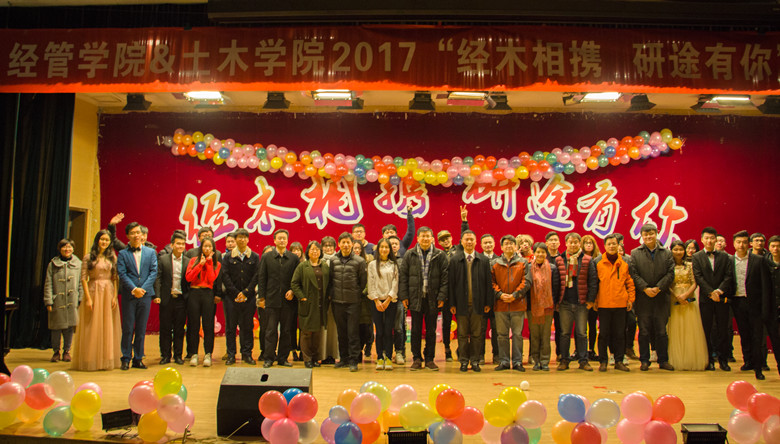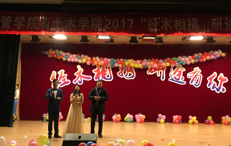 送走了硕果累累的2016,悄悄地迎来了充满希望的2017。回顾过去,激情与奋斗,成功或失败都随着时间的流逝成为了历史,而每个人也都在总结自己的2016并展望美好的2017。2016年12月29日晚,我们迎来了土木公司、经管公司迎新年联谊晚会。党委研究生工作部副部长顾永东,土木公司经理肖岩,经济与管理公司党委书记杨琦,公司党委副书记熊中宏,太阳集团tyc33455官网副经理汪霄,经济与管理公司副经理陈同扬,两院研究生导师代表、系主任、学办老师、校研究生会和各兄弟公司研究生会主席与两院500多名研究生齐聚一堂,共迎新年。