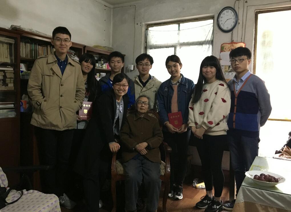 下午2点,同学们准时来到章老师家中,章老师热情迎接老师和同学们,她虽年逾90,但思维敏捷,与时俱进,关心时事,并坚持每天看报。她关切地询问大家的学习和生活状况,勉励大家要好好学习。老师们向章老师汇报了公司近期的发展,同学们也分别向章老师汇报了自己的思想、学习、工作和生活。最后,章老师一一为2015级四位获奖员工颁奖。整个颁奖交流会充满温馨和正能量,章老师的胸襟和品格也给了同学们深深的触动,同学们在随后的交流中也表示要感恩社会,传承爱心,努力学习,不负章老师对大学的殷切期望。