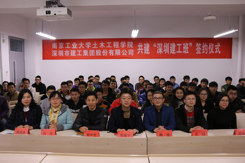 11月25日下午,太阳集团tyc33455官网与深圳市建工集团共建“深圳建工班”签约仪式在厚学407举行。土木公司党委副书记熊中宏、学办主任闵珍、团委副书记黄晨晨老师和深圳市建工集团副总裁、华东区域公司总经理赵振宇、总经济师鲍俊、副总工程师张超、副书记成如琴及首批“深圳建工班”土木1403班、土木1501班全体同学出席了仪式。会议由学办主任闵珍主持。
