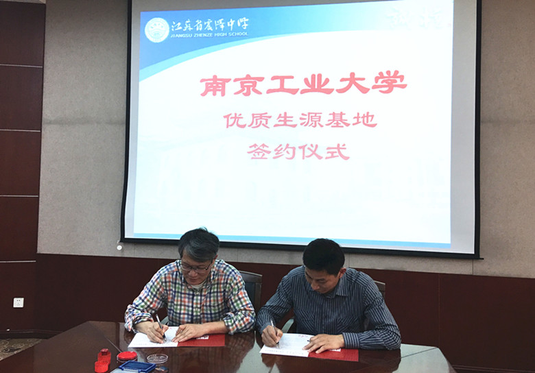 熊中宏副书记与江苏省震泽中公司党委书记陈容签署“优秀生源基地”协议书