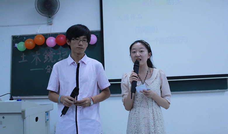 活动首先欣赏了入围作品的精彩片段,随后展示了优秀微电影作品。在本次“土木镜记”比赛中土木1206班宁立眉等同学的微电影作品《父与子》获得最佳纪实奖;工管1203蔡燕国等同学的《飘》获得最佳文艺奖;节能1202刘斌等同学的微电影作品《又是一个疯狂的夏天》获得最佳编剧奖;节能1202闫燚磊等同学的《17岁》获得最佳创意奖。获得优胜奖的作品还有《逃课进行曲》,《搭讪》,《将爱进行到底》等。小小的镜头下蕴含了无比的深意。《父与子》中真挚的亲情,一件寻常家庭中都会发生的小事,却展现出了亲情的巨大力量。《又是一个疯狂的夏天》中朴素的展现了老员工的真实情状,老员工活虽然轻松但却容易迷失自己,所以老员工需要一个目标并且不断为之奋斗。而《十七岁》以MV的形式生动有趣地为大家呈现了一个关于巨星成长史的辛酸故事。每一部微电影作品都蕴含着参赛选手的真情与努力,每一部作品也都显示着当今老员工朝气蓬勃、积极向上的生活态度。