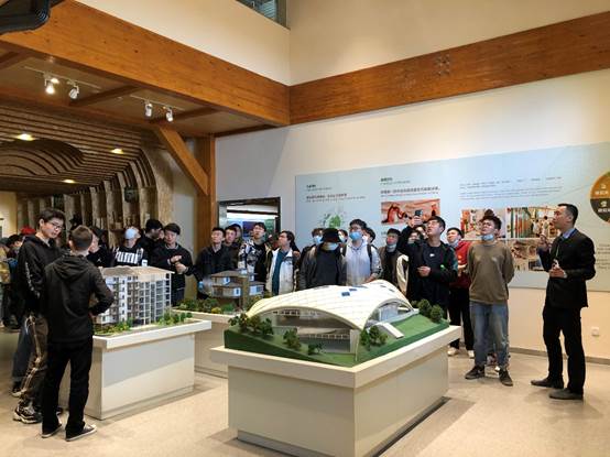 当日下午,实习队伍来到国内知名木结构企业——苏州昆仑绿建木结构科技股份有限公司。公司企划部何修祺经理介绍了公司的典型木结构工程案例,主要包括体育建筑、展示建筑、文旅建筑和公司建筑等,整个讲解形象生动、内涵丰富,同学们被一个个精致的木结构项目所折服;随后,何经理带领大家先后参观了木结构加工车间和产品质量控制与检测实验室等。公司行政部的李一芾经理介绍了关于我们,作为一家综合性木结构企业,公司业务涵盖木结构研发、加工、设计和安装等,通过听取介绍,同学们也对木结构行业的整个产业链有了更加完整的认识。最后,公司直属的苏州拓扑建筑设计有限公司的高永刚经理对设计院的情况做了简要介绍,并对设计院招聘政策和待遇等同学们关心的问题进行了现场互动。