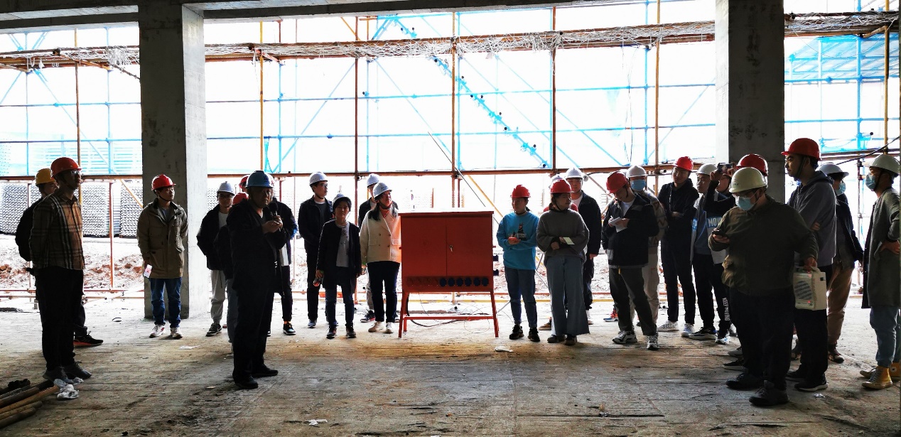 3月24日至25日,在卢红琴、宋俊美、霍瑞丽、蔡云竹等老师的带领下,同学们走进了公司校园内部工地项目—太阳集团tyc33455官网江浦校区化学与分子工程公司办公楼和实验楼,该项目由江苏省建筑设计研究院有限公司设计、华夏工程项目管理有限公司监理、江苏贡固建设工程有限公司施工,总建筑面积15979.70平方米,采用钢筋混凝土框架结构体系,地下1层,地上6层,总建筑高度23.85米。现场参观时,本项目正在进行第4层梁、板、柱钢筋的绑扎工作,通过专业技术人员的讲解,同学们对钢筋混凝土框架结构建筑的结构平面布置、配筋构造、施工工序有了比较深刻的认识,并学习了山地建筑基础工程的施工要点、楼梯梯柱与梯梁布置、伸缩缝和抗震缝的设计施工等知识。该项目契合本科生毕业设计课题,为毕业设计工作的顺利开展打下基础。