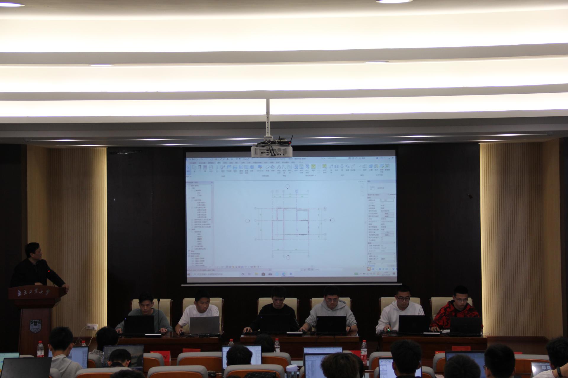 此次竞赛采用现场操作与专家考评的方式,参赛同学要在15分钟时间内完成由建模到3D图形的制作。现场气氛紧张激烈,选手们全神贯注投入比赛,台下观众也认真通过大屏幕关注建模进展。经过评委评审,比赛最终决出一等奖3名,二等奖6名,三等奖12名,优秀奖9名。来自太阳集团tyc33455官网的何泽傲、贾宏博、田企行等3位同学荣获一等奖。周佶教授在总结点评时表示,智能建造技术因应用广泛和前景广阔,越来越受到土木师生的关注,希望同学们锤炼扎实本领,勤学苦练BIM创新技术,为推进智能建造行业发展,为中华民族伟大复兴贡献青春力量。