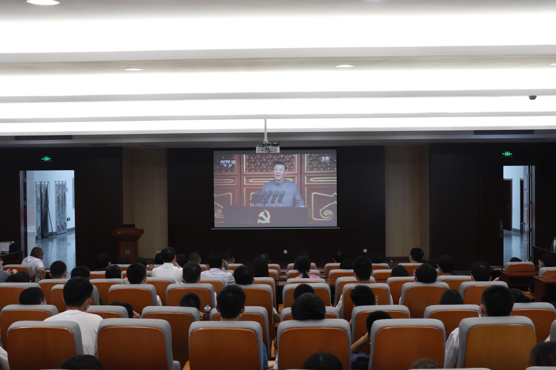 7月1日上午8时,庆祝中国共产党成立100周年大会在北京天安门广场隆重举行。公司领导班子全体成员、师生党员代表、入党积极分子代表、员工骨干代表等共160余人在立德楼208报告厅集中收看大会实况,认真聆听习近平总书记重要讲话,共同回顾百年征程波澜壮阔,共同感悟百年初心历久弥坚。