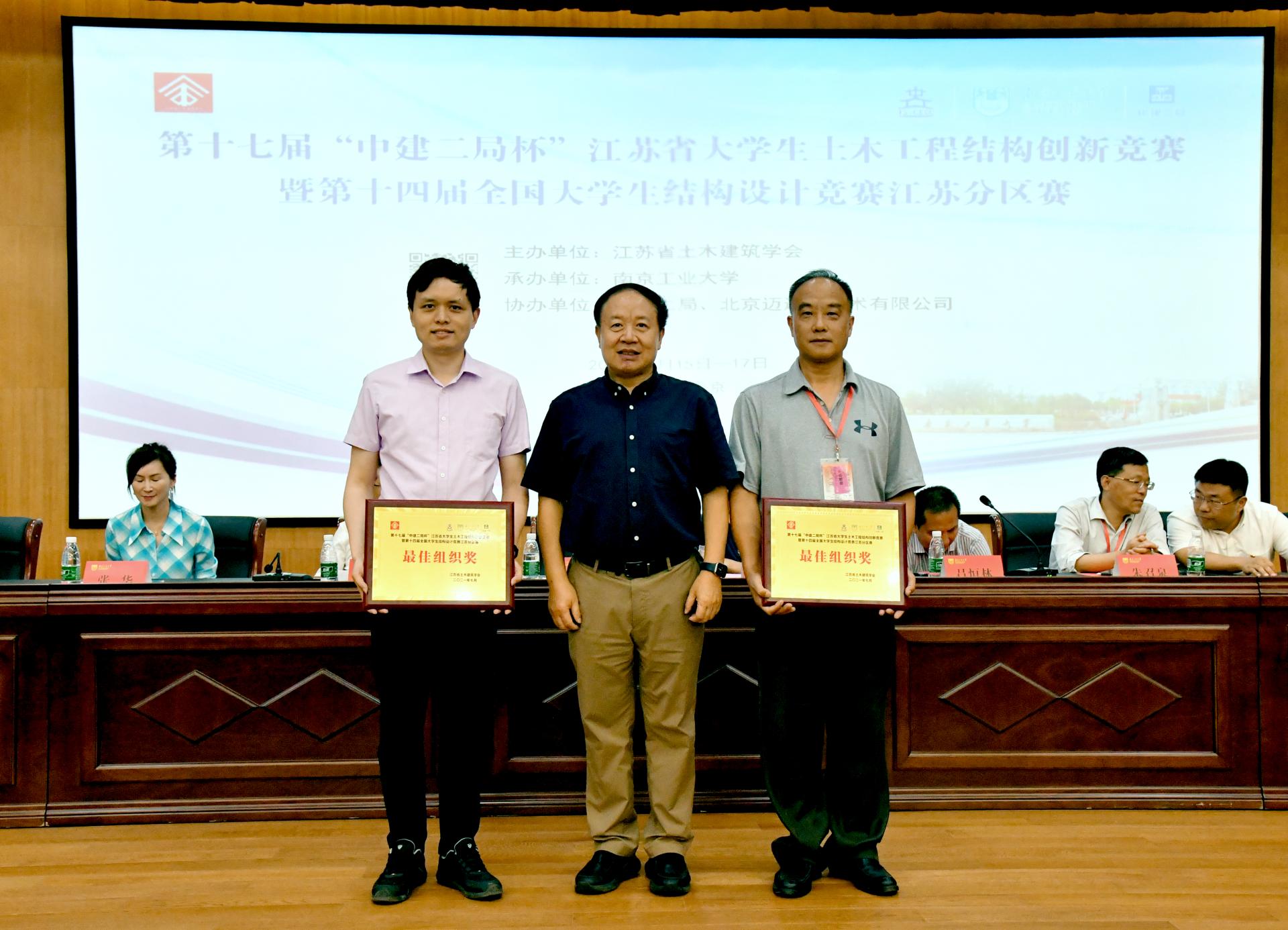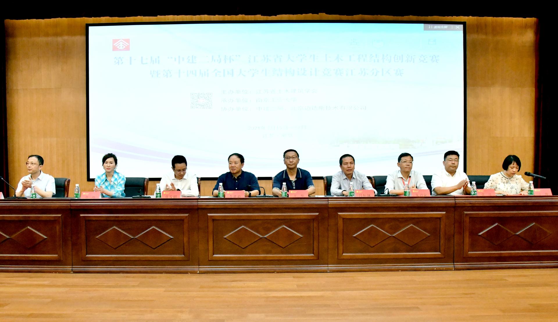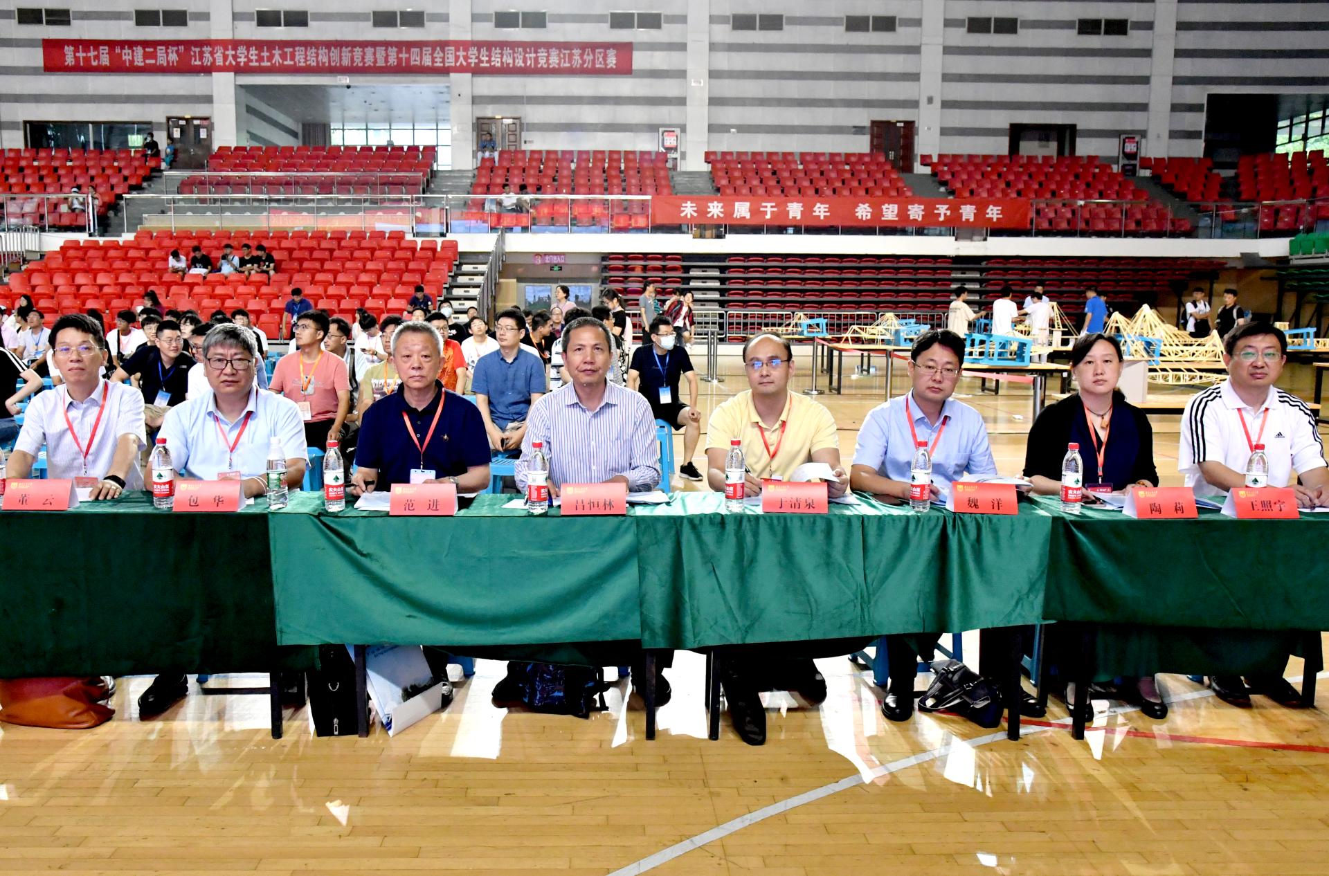 7月17日,第十七届“中建二局杯”江苏省老员工土木工程结构创新竞赛暨第十四届全国老员工结构设计竞赛江苏分区赛在公司江浦校区体育馆圆满落幕。公司副董事长李世收,省土木建筑学会副理事长秘书长王华,中建二局人力资源部总经理张发明,省土木建筑学会教育工委副主任委员吕恒林、秘书长张华及评委代表、参赛师生等出席活动,闭幕式由太阳集团tyc33455官网副经理王俊主持。