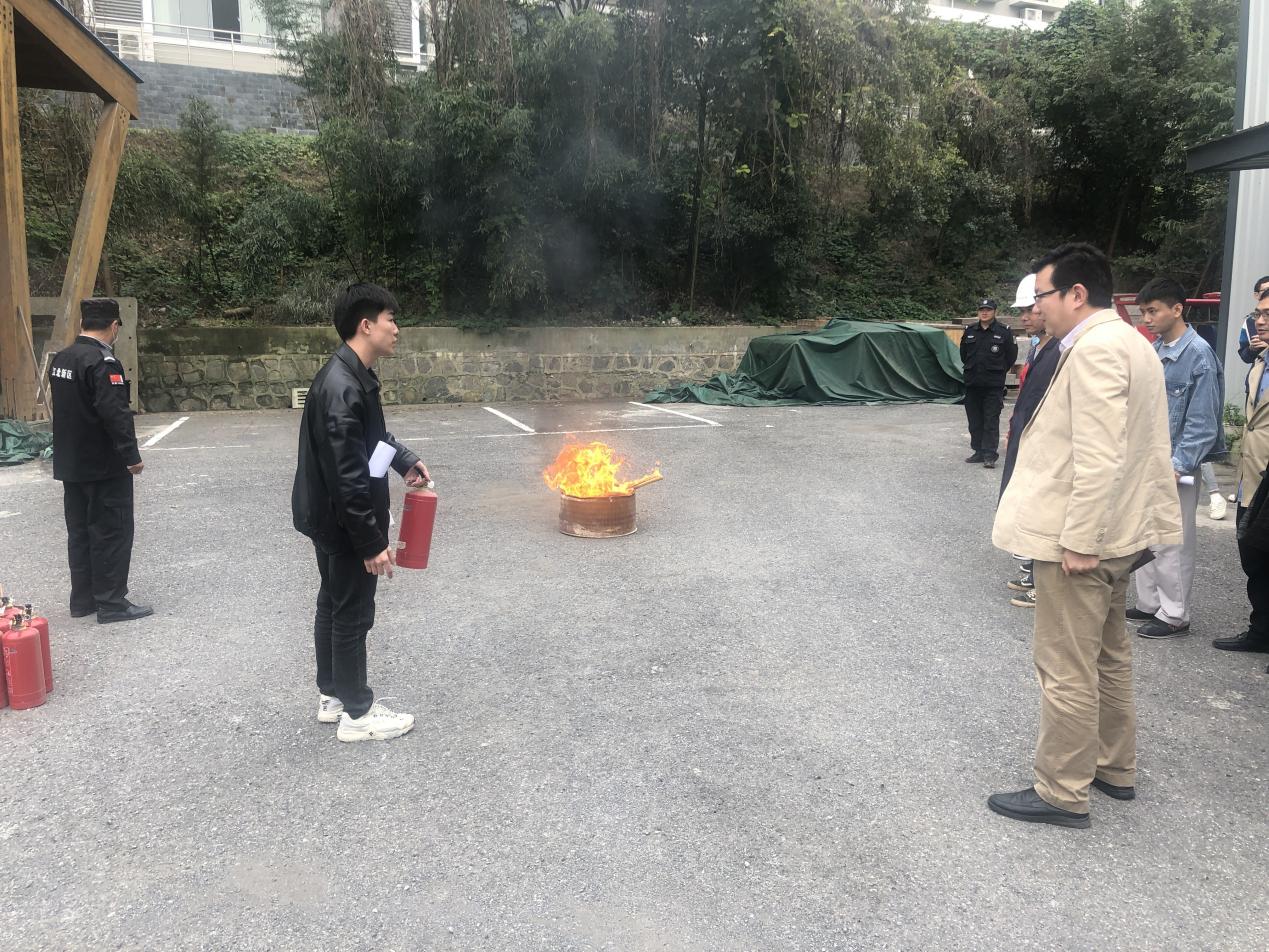 培训结束后,在现代木结构实验室门前进行了消防演练,在刘世伟等老师的指导下,师生们亲自动手实践,掌握了灭火器的使用方法。